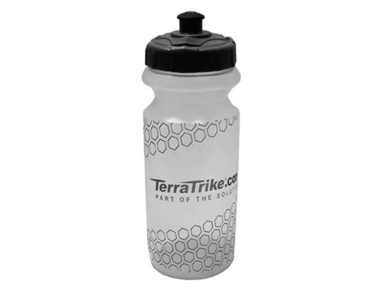 Show your pride with your very own TerraTrike water bottle! This water bottle has a high flow elastomer soft spout (teeth friendly), 2.5" wide-mouth ice cube sized opening, full two-thread screw cap and 23 ounce capacity. The bottle is made of FDA approved food-grade low density plastic, and is easy to squeeze. Available in clear and printed with the TerraTrike logo.