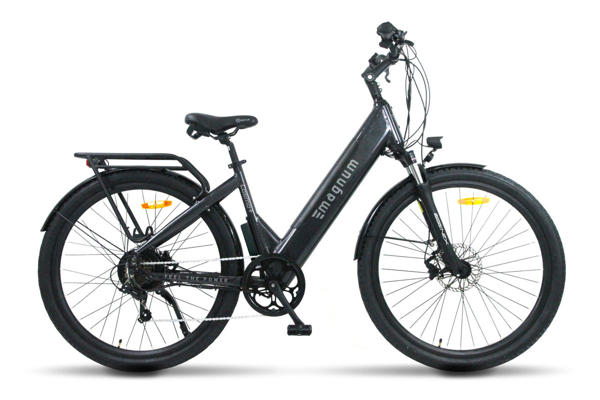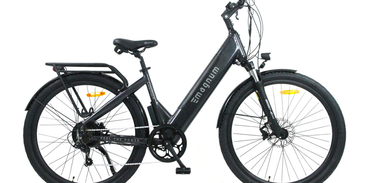 The Magnum Cosmo+ is the road ebike in our popular Cosmo series. The Low Step frame has a fully integrated battery giving the Cosmo+ better balance and an overall low ebike profile. The power system is 48 Volts driving a 500 Watt motor and a 15Ah battery for the power and range you need to run errands or go on a relaxing bike ride.