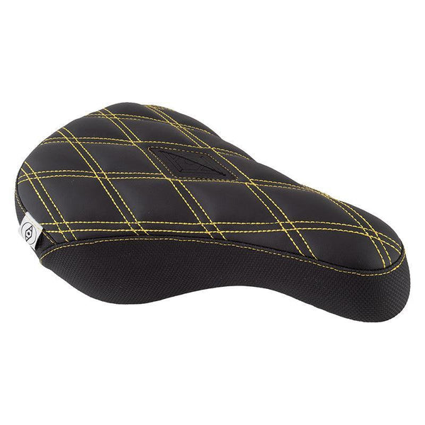 Motorcross inspired seat with 3 panel construction and dense mid foam. Vegan tufted leather top. Dira-Grip material side and rear panels. Double stitched for improved durability. Flush pivotal bolt patch and hollow bolt