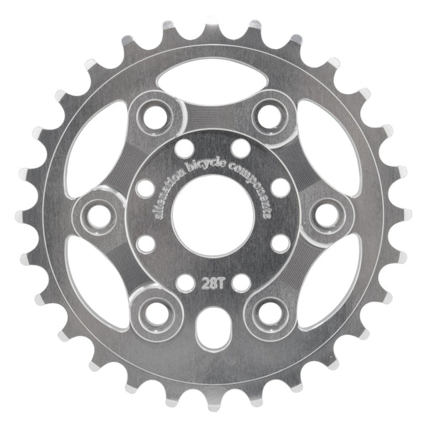 BMX chainring with a design patterned after bicycle chains. 100% CNC Machined 7075 Aluminum. Offset 1/8� teeth provide improved chain alignment. 15/16` (24mm) bore with 19mm & 22mm adaptor