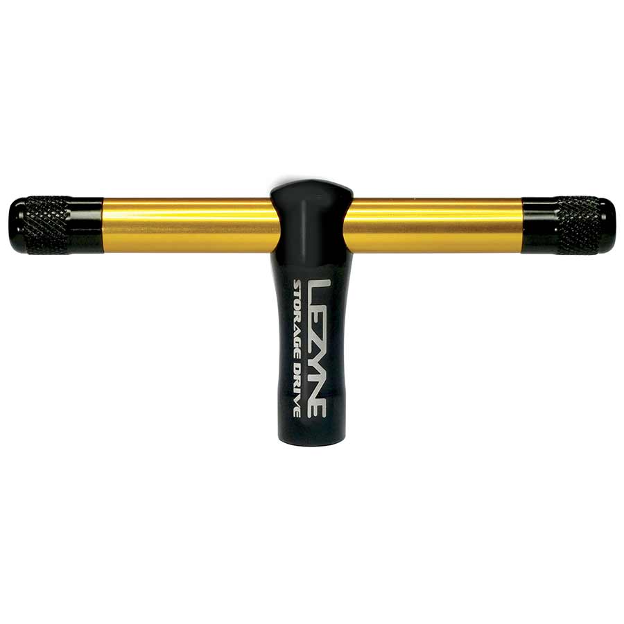 Lezyne Storage Drive Tool Kit. Constructed from machined aluminum the Lezyne Storage Drive is an intelligently designed multi-tool with a removable handle and integrated magnet to hold tool bits in place. Tool bits store inside the handle when not in use. The tool includes a strap for on-the-bike mounting.Includes: 3 4 5mm hex and T25 T30 Torx bits
