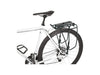 This tough tubular rack is designed for heavy-duty, long distance touring. The integrated side bar provides a lower pannier attachment point allowing more space for cargo on top of the rack.