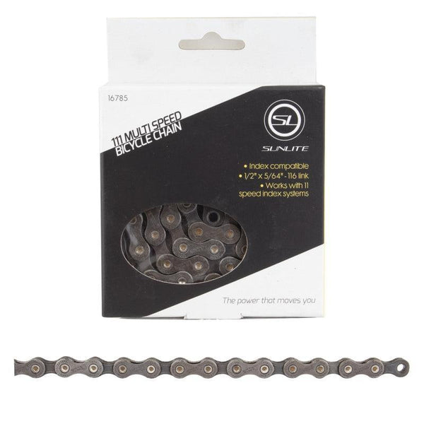 11 speed chain featuring a special hardened coating for improved durability and performance. Inner and outer plate chamfering provides butter smooth shift characteristics