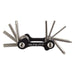 Anodized finish. Includes T25 torx head. 2/2.5/3/4/5/6mm hex heads. Phillips head screwdriver. Flat head screwdriver
