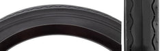 Slick center tread with continuous curved lines on each side of the outer tread surface. Perfect for old school rides such as the Schwinn Stingray or new BMX bikes with a knack for old school vibes