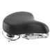 Dual spring saddle with chrome grab bar and vintage feel. Chrome front spring and dual rear springs offer a plush comfortable ride. Heavy duty vinyl top resists tearing and scuffs. Pillar style seat post clamp. 11.5` x 8.5`