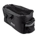 Constructed from water resistant 600D polyester. Large reflective trim. Heavy duty zippers. One main compartment and one rear accessory compartment. Includes removable shoulder strap. Mounts to rack with four velcro straps