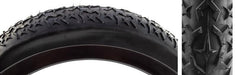 Single compound affordable fat tire for use on hardpack and rocky terrain. Long branching blocks paired with star shaped lugs provide many working edges for grip on rocks and loose terrain. Even height of traction surfaces minimizes lost rolling resistance