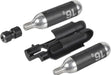 Topeak Nano Air2 DF Inflator -. Ultra compact CO2 inflation kit features a Nano AirBooster CO2 inflator and two 16g CO2 cartridges. Mounts to saddle rail with included Duo Fixer which provides dual use with Topeak Duo Fixer system accessories including Topeak QuickClick saddle bags Tubi tools CO2 inflators lights and fenders. A simple slide and click is all it takes to go on a safe and secure ride.Dual Fixer mount allows for additional attachment of accessories to the lower QuickClick Mount such as Saddle Bags Inner Tube & Tire Lever Fender and Pumps